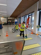 велосипедиста (шлем, налокотники, наколенники). Преодолели полосу препятствий,